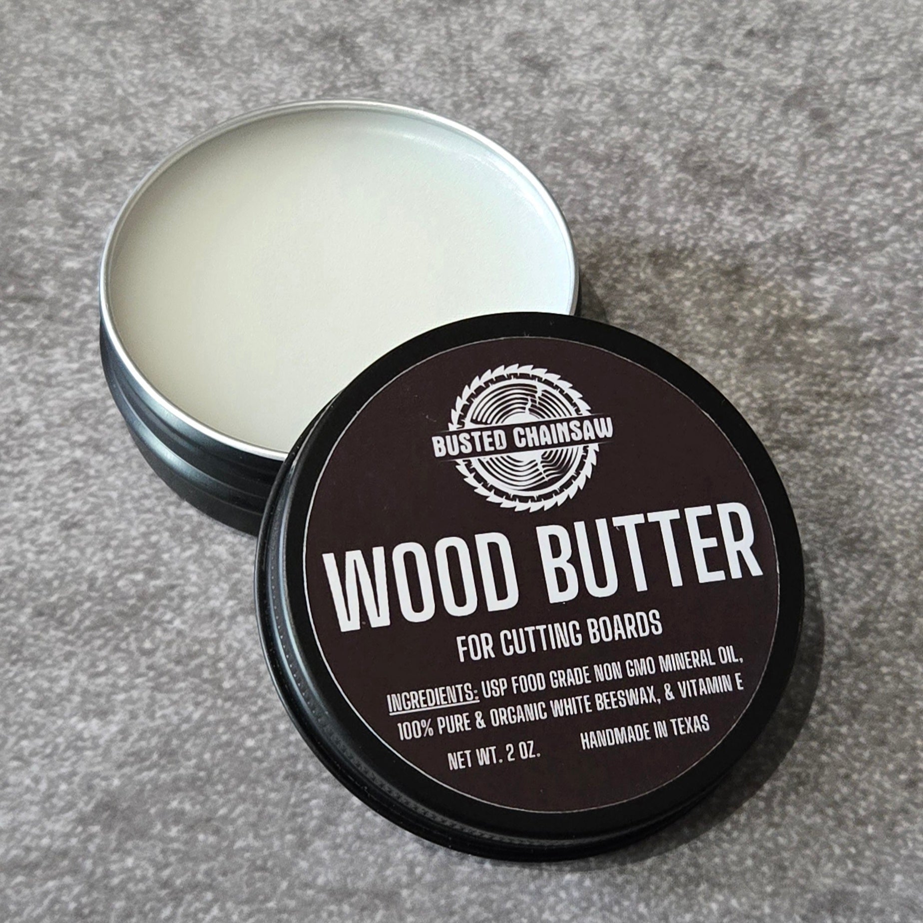 Our Wood Butter is handcrafted in small batches by Busted Chainsaw Woodworking in San Antonio, Texas.